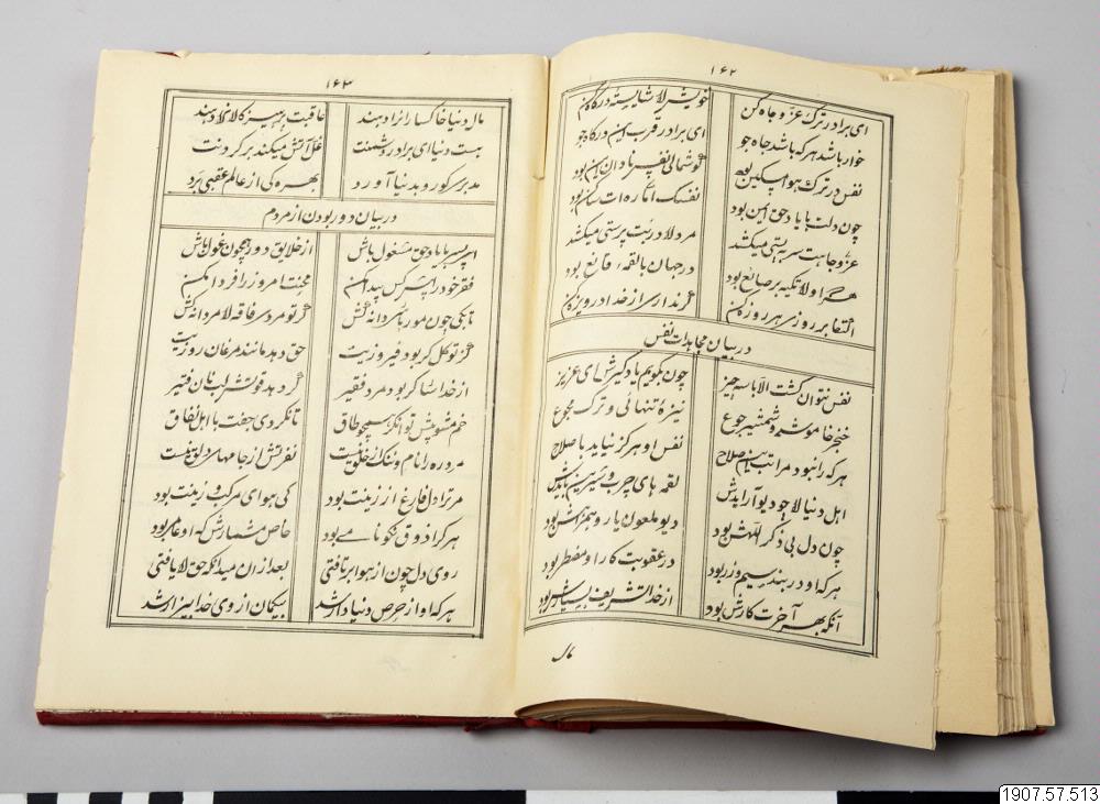 • Bok med religionsregler, Namä Häck, (nr 515), skrivet på persiska språket. Boken lästes i folkskolan.
