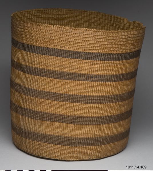 • Korg. Cylindrisk, dekorerad med 5 ljusbruna parallella band (generalkatalogen).