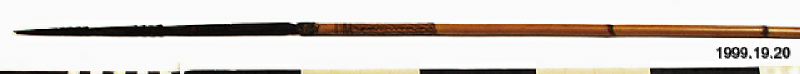 "5 long arrows (allegedly for hunting tigers) 3 of them have bamboo tips, while the remaining two have tips made of iron." Wahlquist, Håkan. 1993. Inventory of the Ethnografic collections of Arne Sucksdorff. Syftar på föremålen 17 till 21.