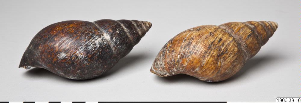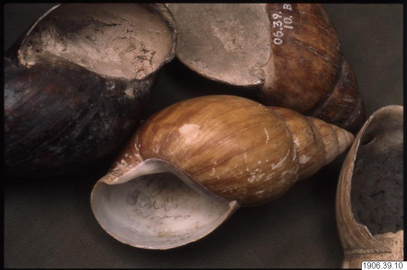 Nr. 4. Snäckor med kraftladdade substanser, donerade av missionär Johan Hammar, som av dåvarande chefen för etnografiska avdelningen vid Naturhistoriska Riksmuseet i Stockholm, Erland Nordenskiöld, al...