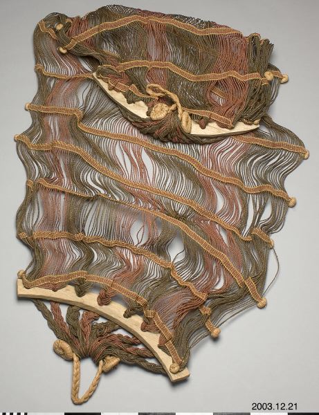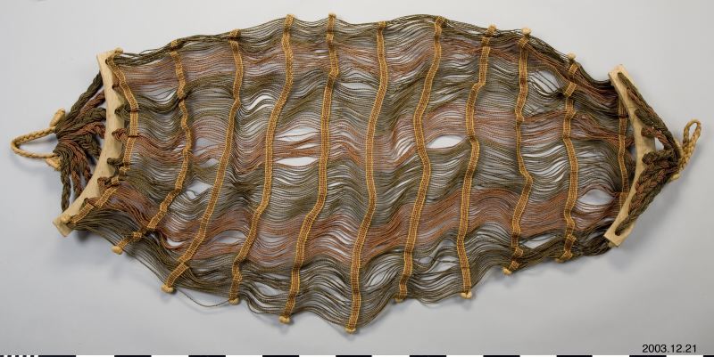 • Hängmatta med av ofärgade och färgade fibrer. Dekorativa knutar. En något enklare hängmatta finns i parallellsamlingen.