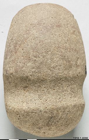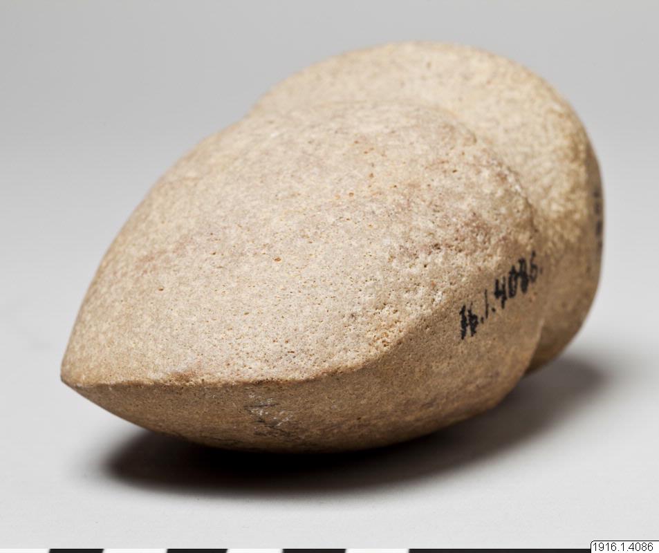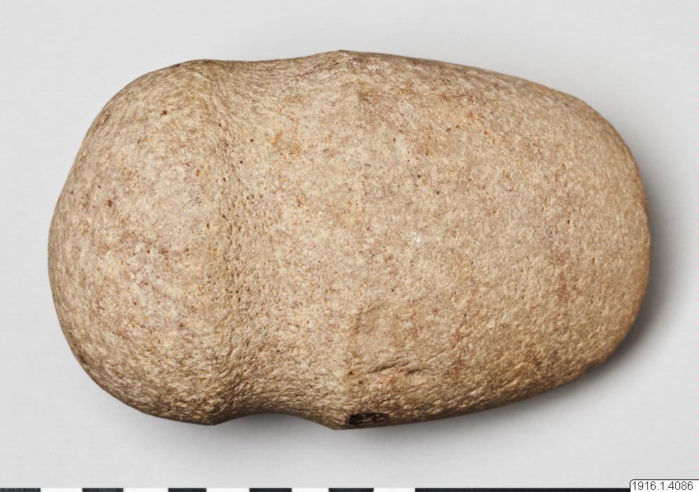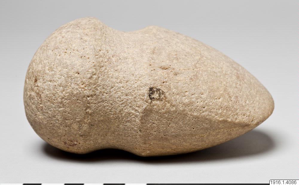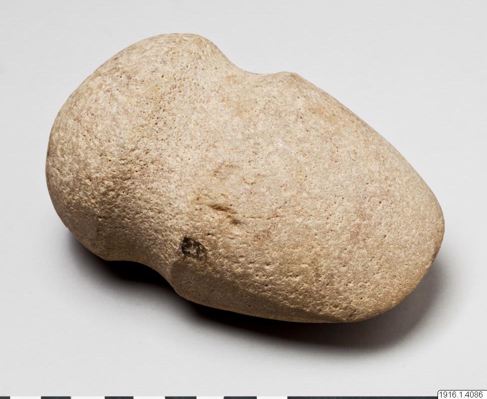 • Stenyxa av ljus stenart med en ingröpning runt hela nacken för fastsurrning.