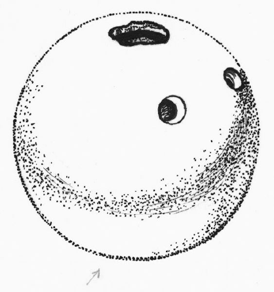 • Lergök tillverkad av Vumi-skal. Helt klotformat och ihåligt skal med två mindre hål och ett lite större.