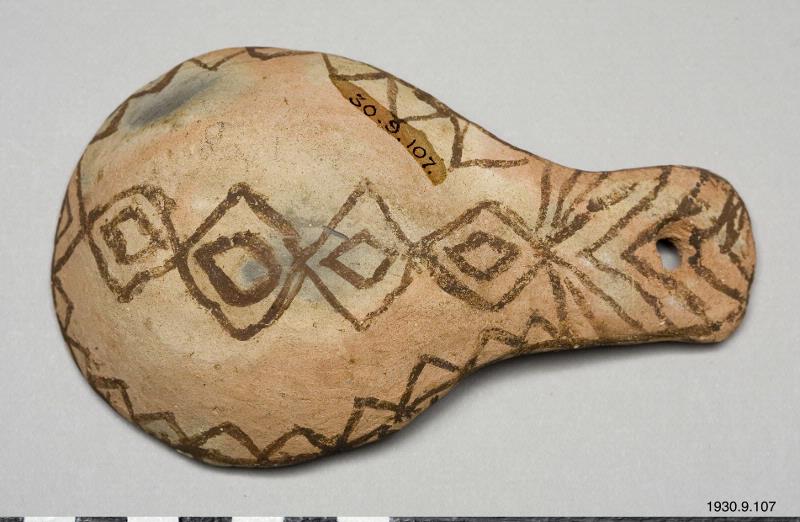Black / orange ladle. Hopi. Not true Hopi style. Child´s work aimed for sale? 1880 - 1930. Enligt Kelley Hays-Gilpin forskarbesök februari 2009.