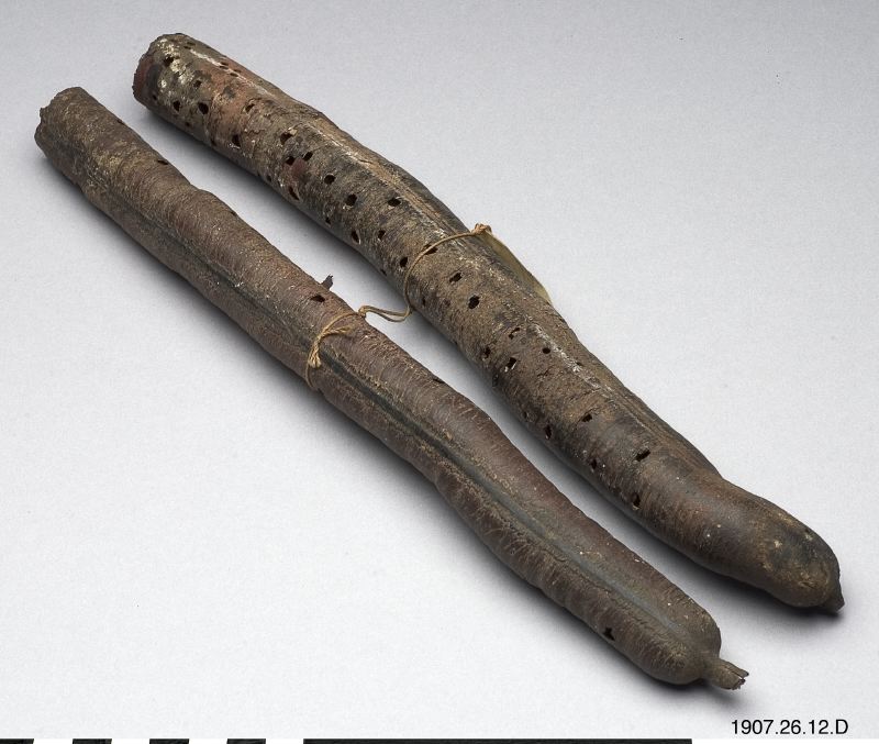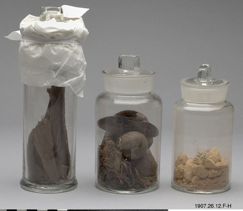 Åtta föremålsnummer som i sin tur består av flera objekt. T ex ett stort svart horn, fröskidor, en flätad boll och föremål som träbitar, djurtänder, fröhus, gräs mm i glasskålar med lock. Ur generalkatalogen: Den som "gripes" av den får hjärtbeklämning, flyr för ingenting och kan t.o.m. bli vansinnig och vild. Den som kan nyttja den blir glad, stridslysten, segerrik och väldigt stark och modig.
