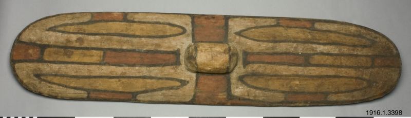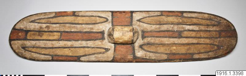 "En sköld från regnskogarna i norra Queensland, Australien. Troligtvis insamlad av Eric Mjöberg. Mjöberg kände båda männen [syftar på Wahlen och Pullein]. Många av Mjöbergs insamlade föremål såldes oc...