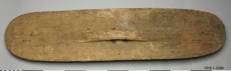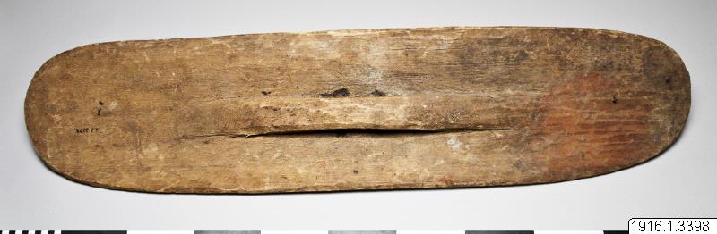 "En sköld från regnskogarna i norra Queensland, Australien. Troligtvis insamlad av Eric Mjöberg. Mjöberg kände båda männen [syftar på Wahlen och Pullein]. Många av Mjöbergs insamlade föremål såldes och gavs till vänner och bekanta efter hans Australien resa 1913. Detta var en inkomstkälla efter hans ansöknings tjänst på Naturhistoriska Museet nekades." (Kommentar från Åsa Ferrier 2025) Yngve Laurell var registrerad som "Personnamn, förvärvat från". Det framgick inte var denna information kom från och därför har det ändrats till Rudolph Wahlen. 2014-08-13/MJ