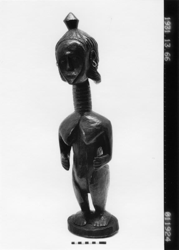 • Enligt generalkatalogen: Skulptur, av trä, svartmålad, föreställande kvinnogestalt. Uppträdda glaspärlor i öronen. Sannolikt tillhört bunduförbundet. Är icke med visshet tillverkad hos bullom.