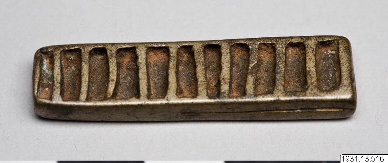• Guldvikt. (Enligt generalkatalogen). Avlång, nedskuret mönster i relief på ena sidan.