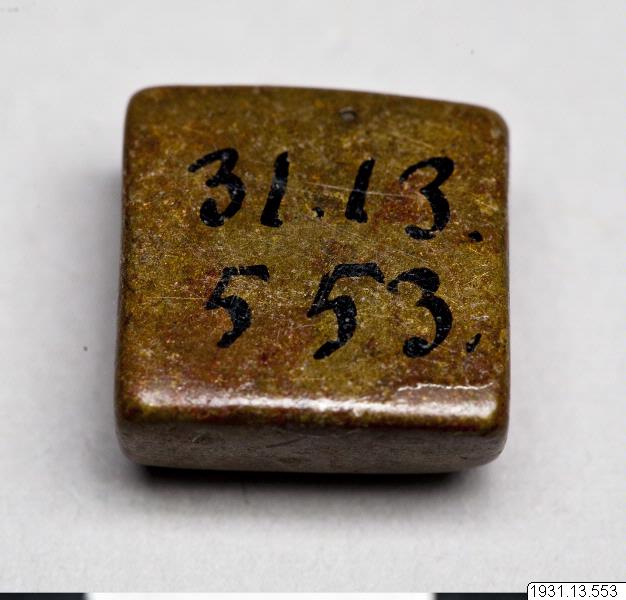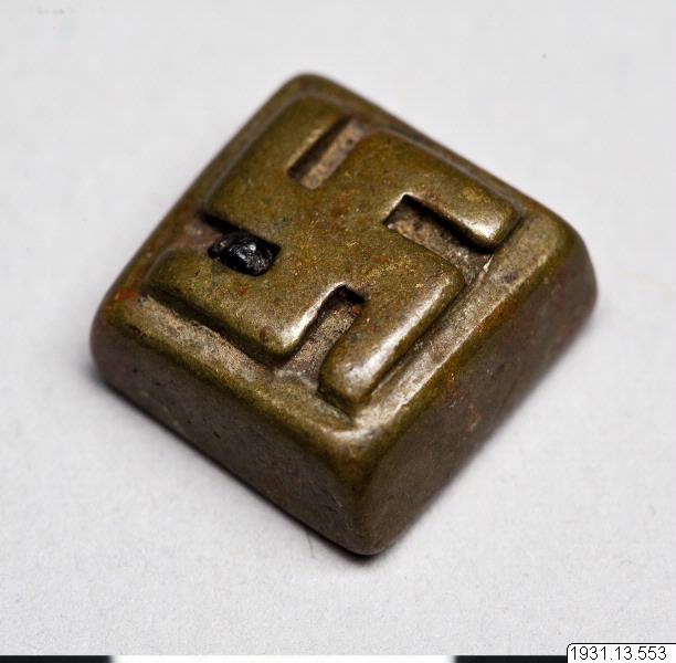 • Guldvikt. (Enligt generalkatalogen). Fyrkantig. Mönster i relief på ena sidan; svastika.