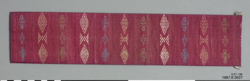 Delsamling 1887.8.2489-2867 är inköpt i Tokyo och består av sandaler, skor, handdukar, ätpinnar, symboliska svärd, många rituella och religiösa föremål och figurer, klädedräkter mm. (PH 960506)