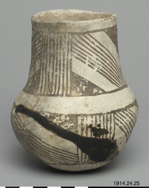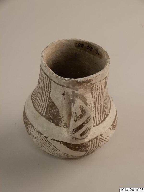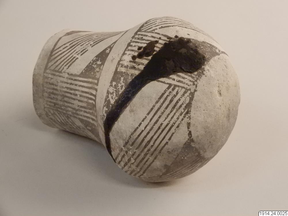 Höjd 12 cm. Max.diam. 10 cm. Mynningsdiam. 6,5 cm.