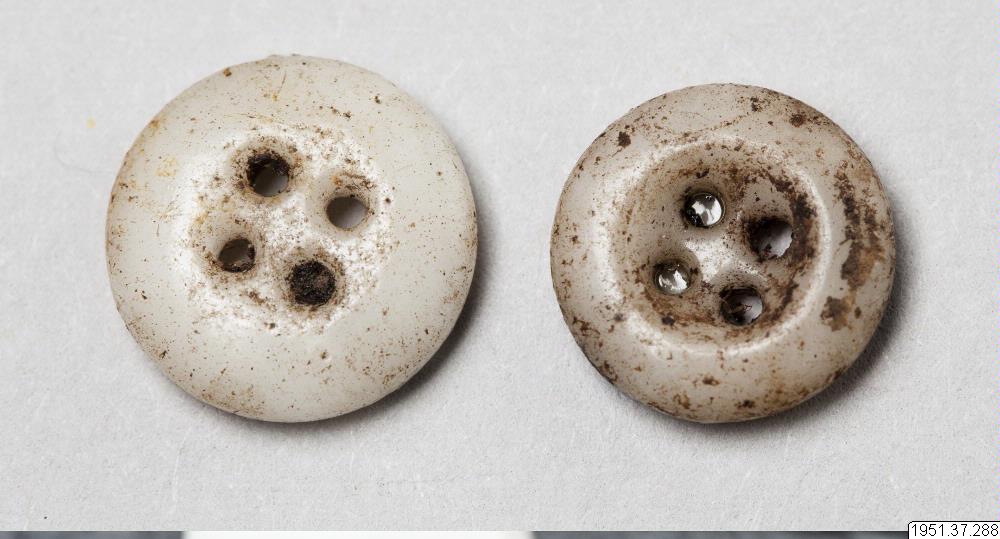 • Två knappar av den typ som importeras och används bland annat som prydnad på kranier.