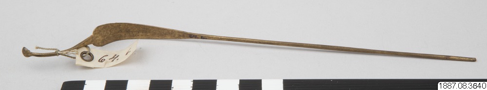 Hårnål, smycke av metall.Gåva av kapten Benedict Carlos i Niuewhang. Kina.