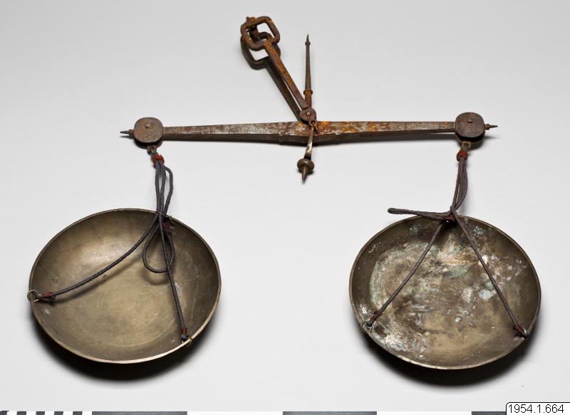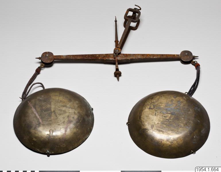 • Balansvåg av järn med skålar av mässing.