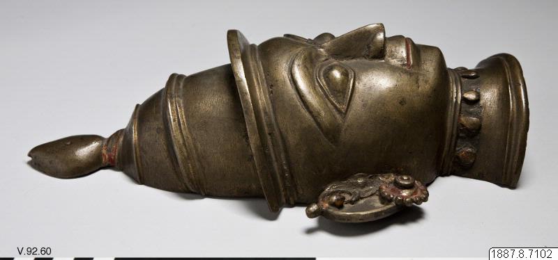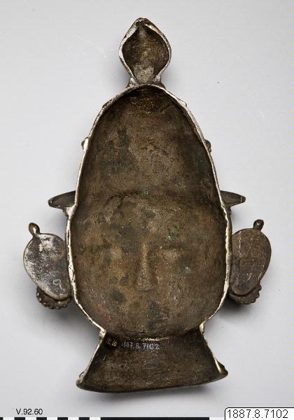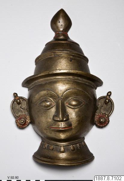 • Mask av mässing. För Devi. Rödmålade detaljer.