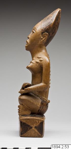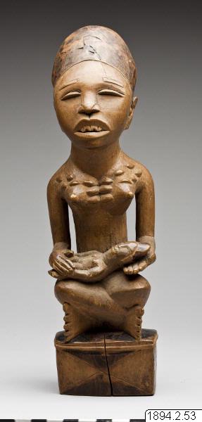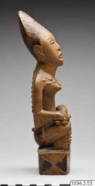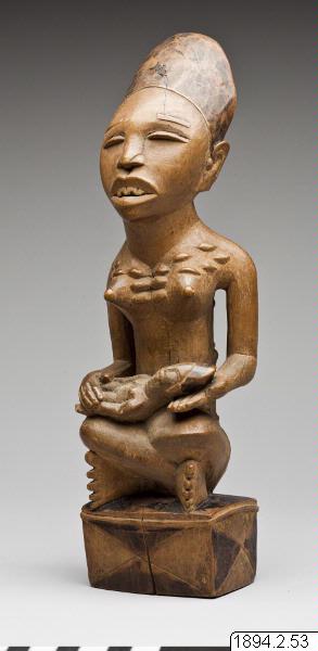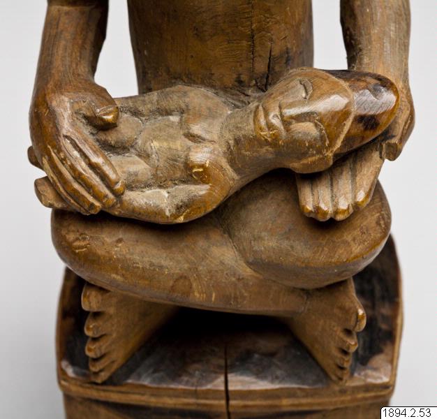 Mor- och barn-skulpturerna från nedre Kongo är bilder av fruktsamhet men berättar också om andlighet och rituell renhet. De påminner oss om att samhället hos bakongofolket är matrilineärt organiserat. Arv följer morslinjen och kvinnor kan ha viktiga politiska roller inom klanen. Skulpturerna förvärvades av Friedrich Wilhelm Ulff, som var tjänsteman i den belgiska förvaltningen i Kongo i slutet av 1800-talet och skänktes till museet av kommendör C. Ulff. (Utställningstext till Fotoutställningen Med Världen i Kappsäcken)