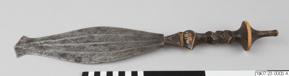 • Inköpt 1907 på auktion efter kassören Johan Ludvig Eugen Neijber (1851-?) (se Aftonbladet 1907-03-25). Fadern Ludvig Theodor Neijber (1819-1913) lät ställa ut 9 föremål från Gabon på Allmänna Etnograf... Visa hela