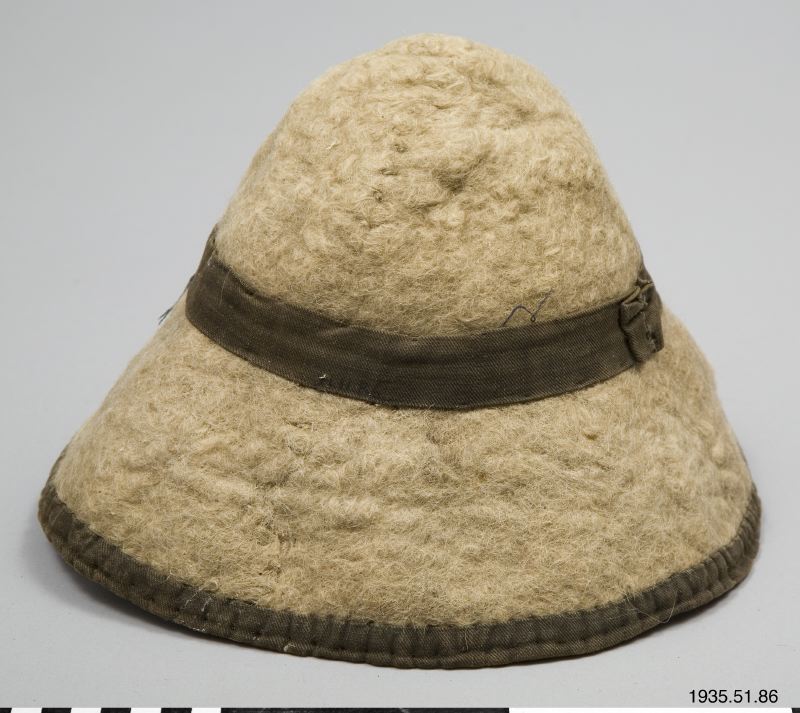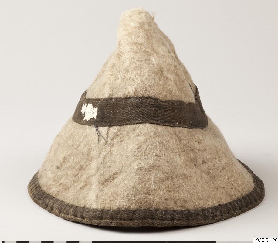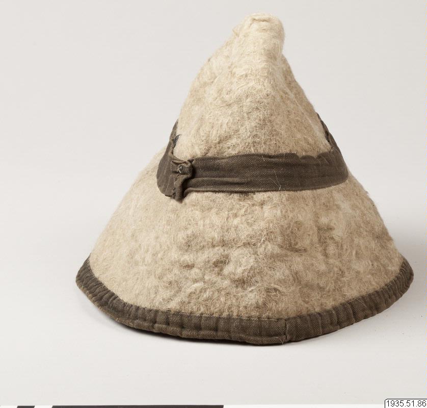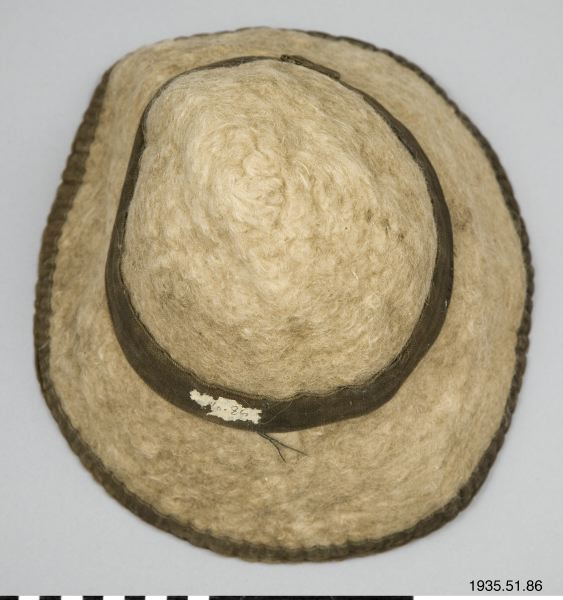 • En vanlig hatt som bars av många tebbu. Grå filtad ull med brunt kantband nedtill samt ett mitt på mössan.