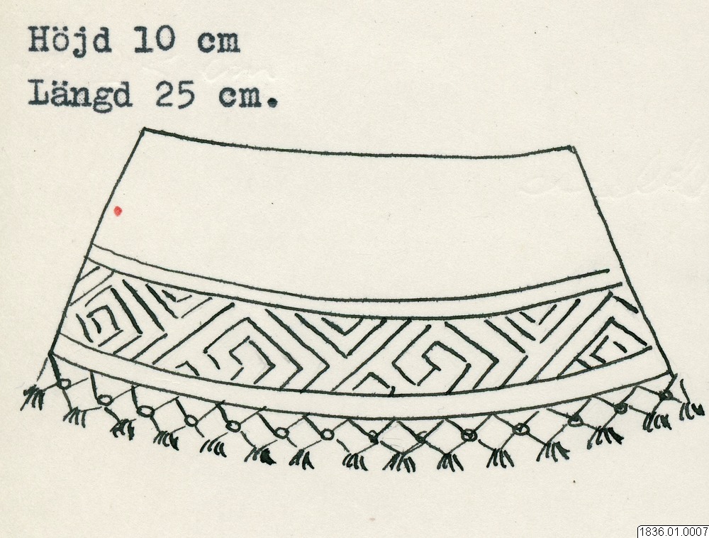 Utställd 1878 - 1879 i Arvfurstens palats, Stockholm av Allmänna etnografiska utställningen 1878-79.