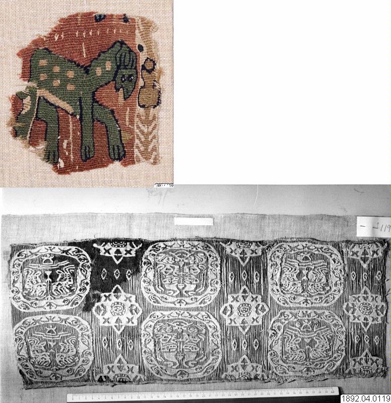 • Hela samlingen (1892.04) är insamlad dels av Gustaf Retzius, dels av F. R. Martin. Retzius samling (144 nummer) torde härröra från Egypten och utgrävningar i Akhmim och Arsinoe. De Martinska textilier... Visa hela