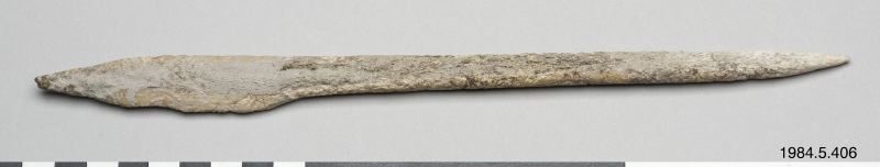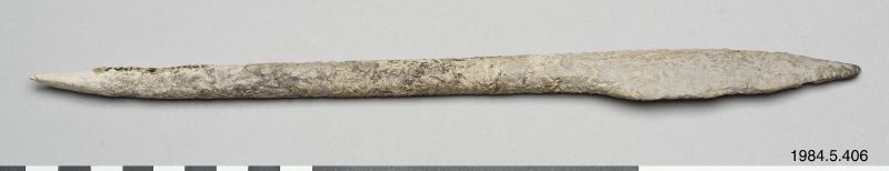 5. Spjutspets funnen av den 26 juli 1987 djupt nedstucken i marken vid Bloody Fall vid Coppermine River, Nunavut, NWT i Kanada. Det var platsen för en blodig massaker 17 juli 1771 då indianer dödade e...