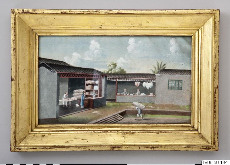Tavlor (134-139), sex stycken, mindre, visande bomullsvävning, Kina. 183.19-24. (generalkatalogen).