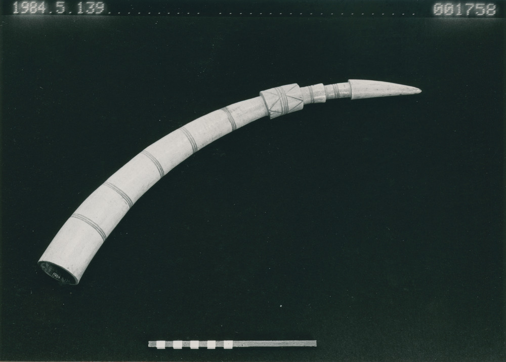 • Snidad och skuren elfenbensbete, ofullbordat blåsinstrument (?).