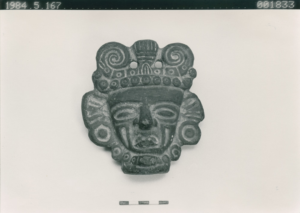 • Avgjutning av aztekskulptur. Människoansikte. Relief.