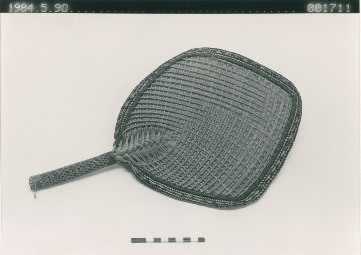 • Fläkta för att underhålla elden. Flätad av växtfiber samt ett påsytt rött band en bit in från kanten.