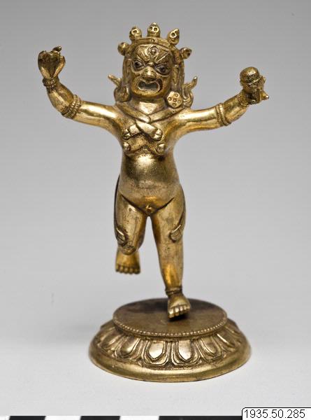 • Skulptur av förgylld brons; Yami stående på vänster ben på en rund lotustron.
