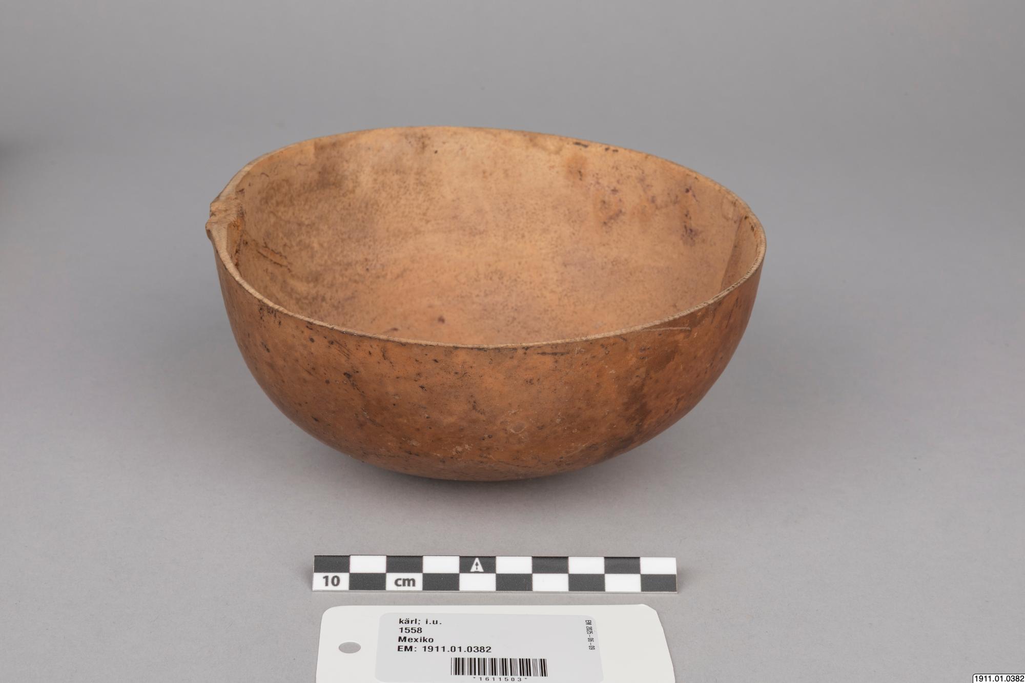 • Skålformigt kärl, mindre, i övrigt lika med nr 381. Träkalebass. Omgivningen av San Crist6bal, 528. San Cristdbal Chiapas Mexico [ocr]