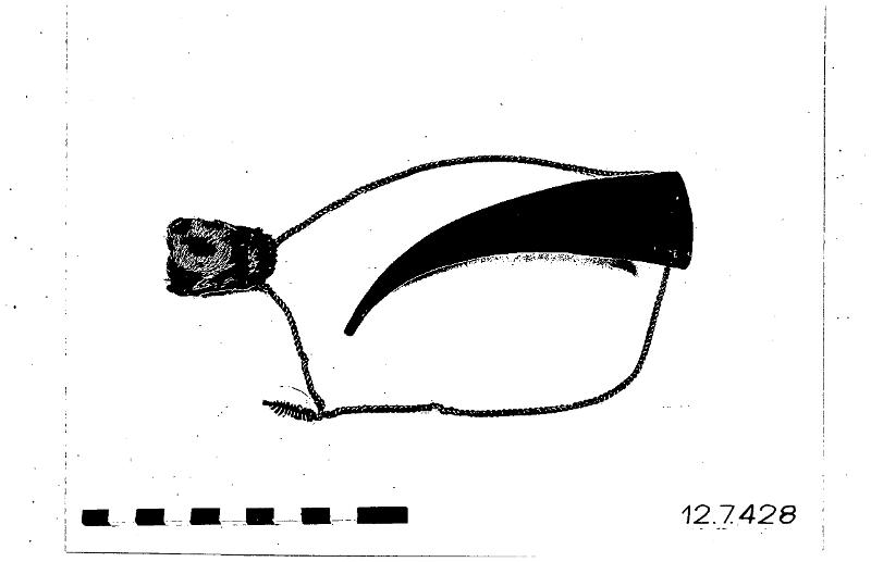 2 stycken amuletter sammanbundna med en metallkedja. Ett gethorn och ett stycke leopardskinn, vari "medicin" insytts. Som är att vänta, är man i allmänhet obenägen att göra sig av med amuletter. (generalkatalogen)