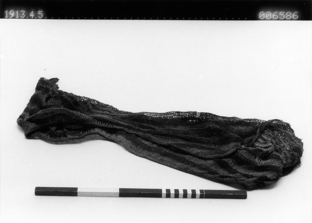 D:o Av långsmal form med snibblik utdragna ändar.Bärband saknas På båda sidor prydd av längsgående bårder i mörkt och ljusare rödbrunt. Längd cia 122 cm. . • [ocr]