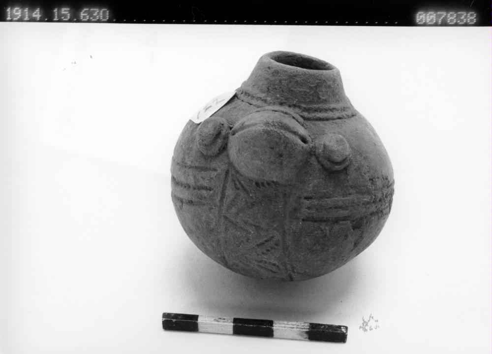 • Som föregående nr 629;.•den inskurna dekoren mycket grov. Höjd: 6.3 cm., Diameter: 6.3 cm. [ocr]