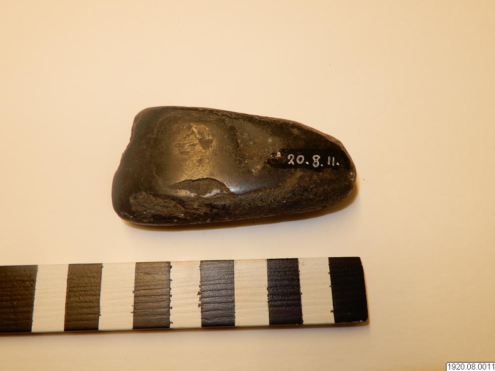 • Stenyxa. Platt. Längd 7,8 cm. Bredd 4,2 cm.