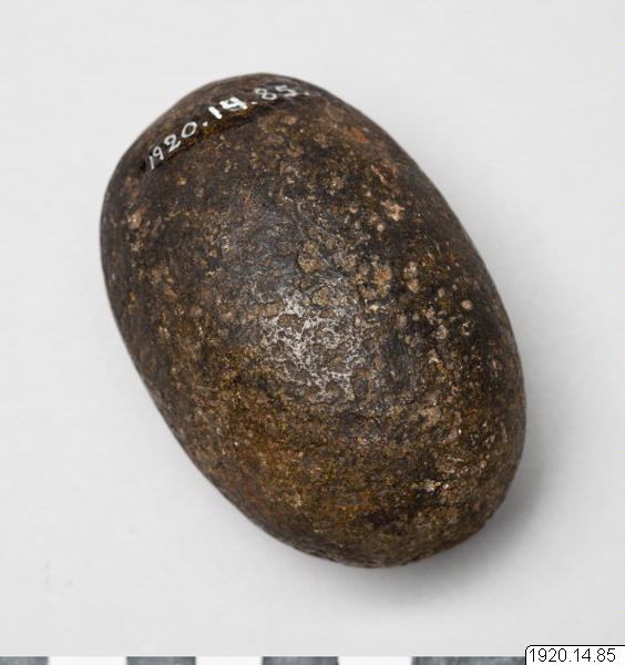 Sten, oval, av liknande stenart som nr 84. Mot huvudvärk. Malanda, Queensland, Australien [ocr]