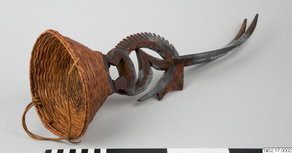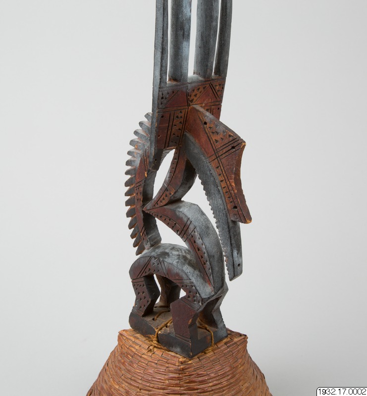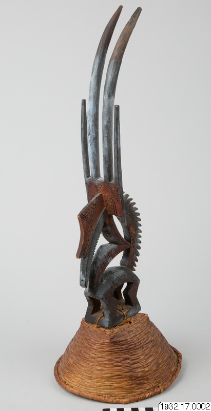 "Maskuppsats" (oklart vad detta begrepp står för, från generalkatalogen). Teki ouara, ("agerdyrkningsdyret"). Föreställer den stora och den lilla antilopen och brukad vid sånings- och höstfester, och varje gång ett nytt stycke land skall intagas till dyrkning. Höjd: 54 cm.