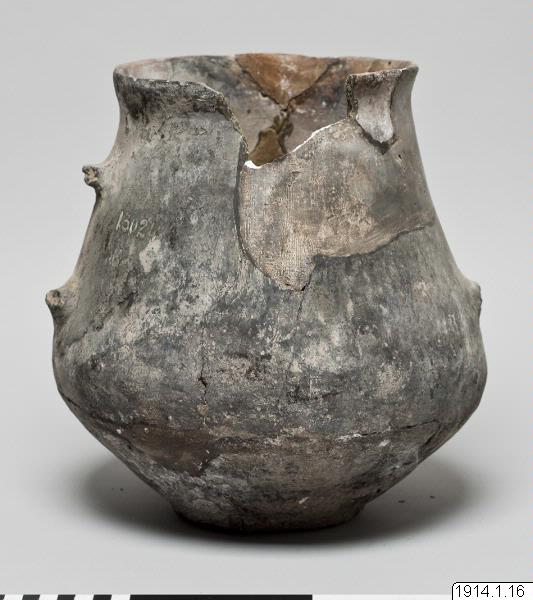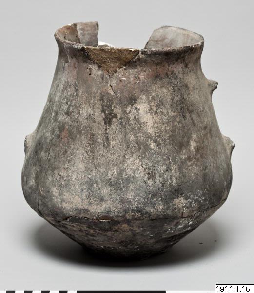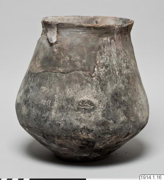 • Gryta, stor med hög hals. (generalkatalogen) Lös kantbit ligger i kärlet.