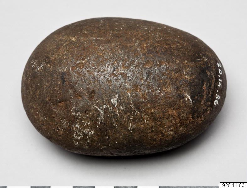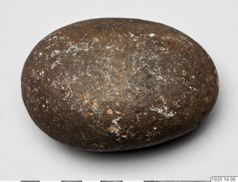 Sten, oval. Större än de båda föregående. Tycks vara av liknande stenart. Mot huvudvärk. Malanda, Queensland,l Australien (generalkatalogen)