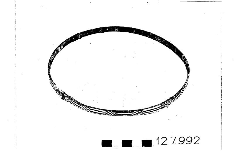 Ringformig prydnad. Flätad i mönster av gräs eller bast. Förfärdigad av de unga flickorna och bäres av dem kring huvudet. Se nr 990. Buyore-distriktet norr om Kisumu port Florence