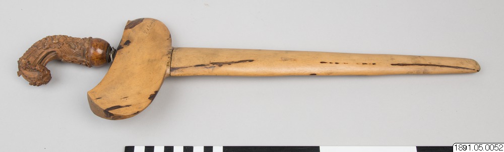 • A straight kris from the Island of Madura, East Java, with a Donoriko (winged horse) hilt.