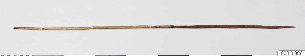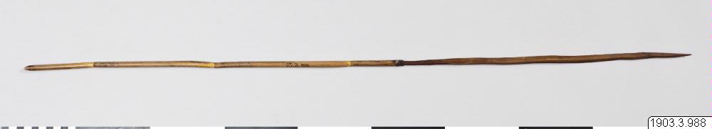 • Pil med spets av trä utan hullingar, skaft av rör utan styrfjädrar.
