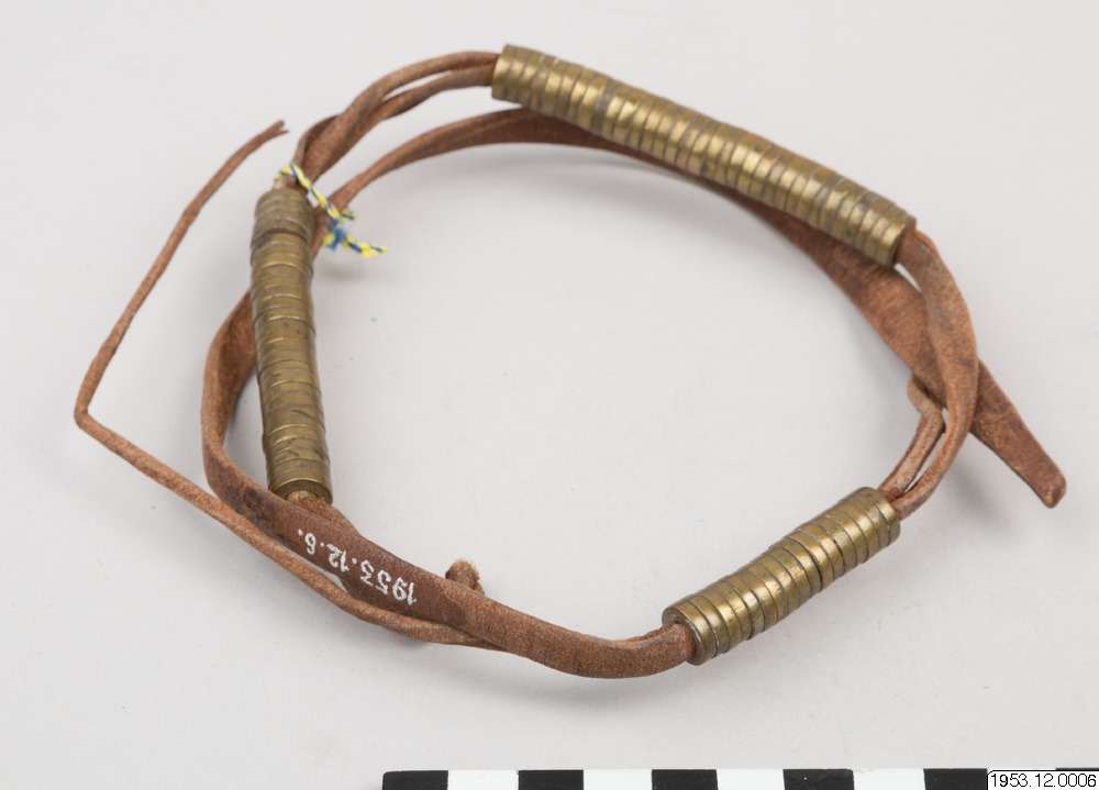 • Tre skinnremmar förenade med kompakt uppträdda mässingsbrickor på tre ställen.