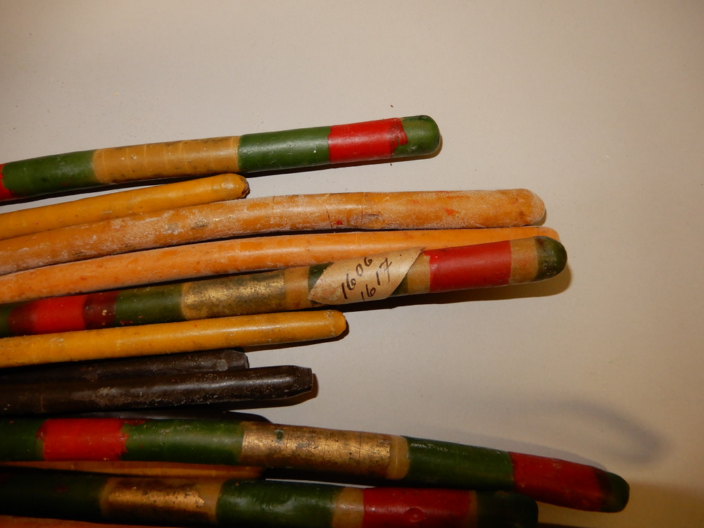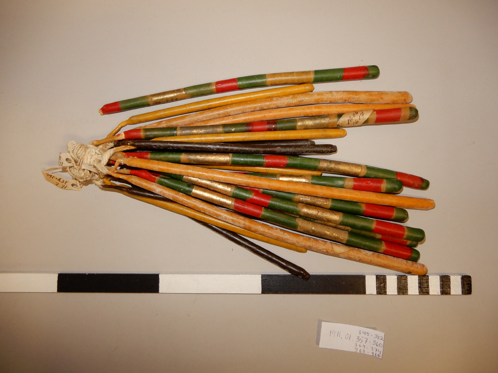 • Vaxljus, brokigt målat. Sitter ihop med flera andra.