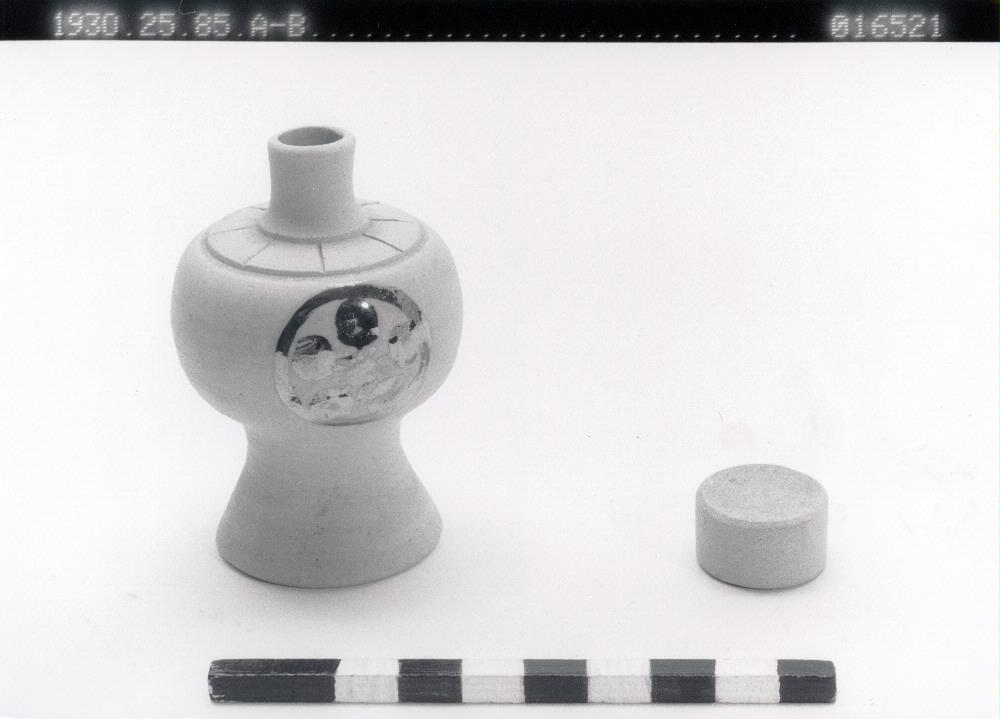 Del av uppsättning till altare. Ursprungligen var det under inventarienumret 1930.25.0061 ett enda nummer för en mängd föremål som hörde till altaruppstasen. Detta nummer ändrades 1995-96 till många olika, separerade nummer eftersom det handlade om så många föremål. Ida Trotzig skänkte också ett manuskript, 1930.25.0063, som handlar om denna shinto-sekt.