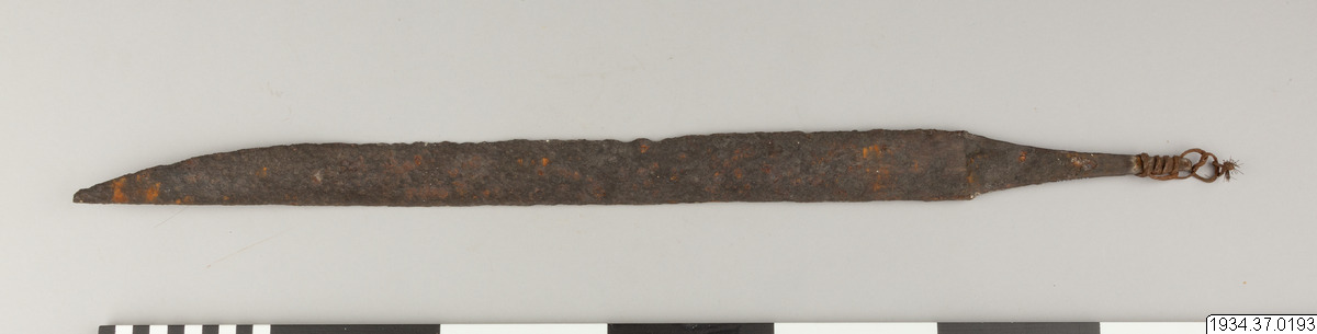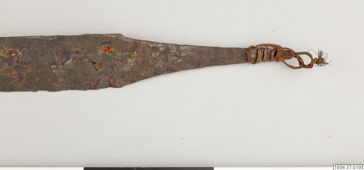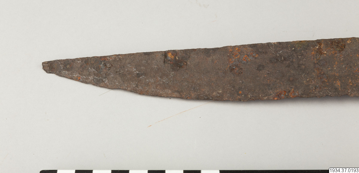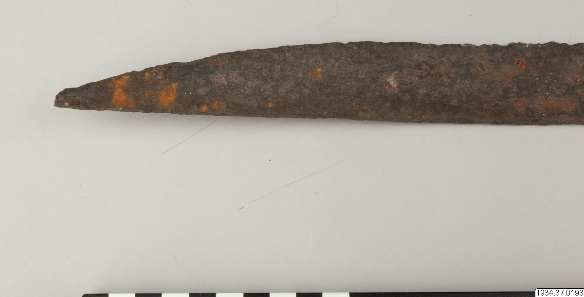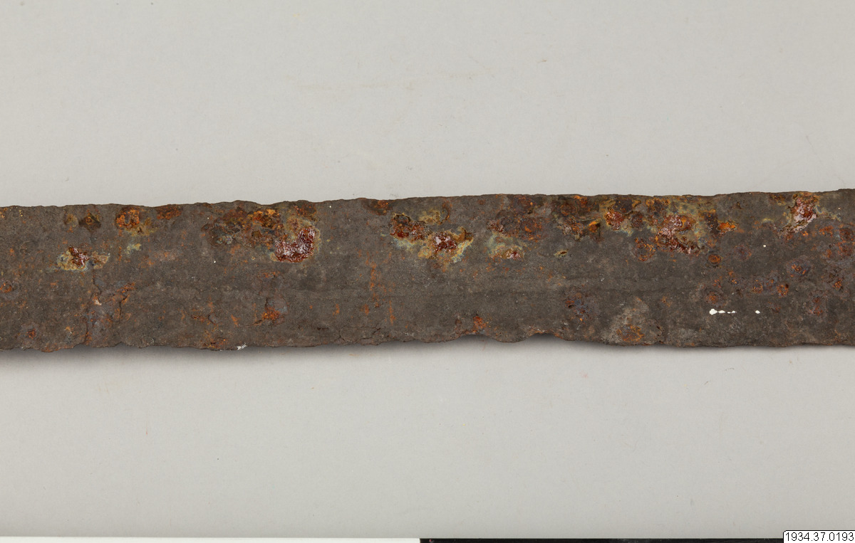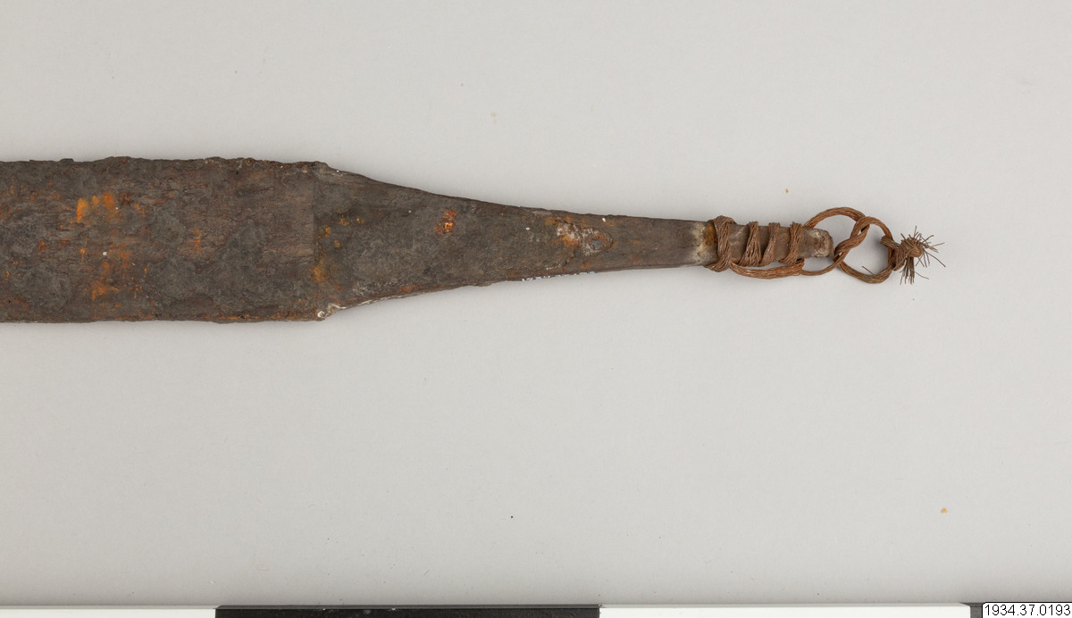 • Eneggat svärd (huggare) av järn, troligtvis yngre än föregående nummer. Enligt kataloguppgift från Takstens gård på Gotland.
