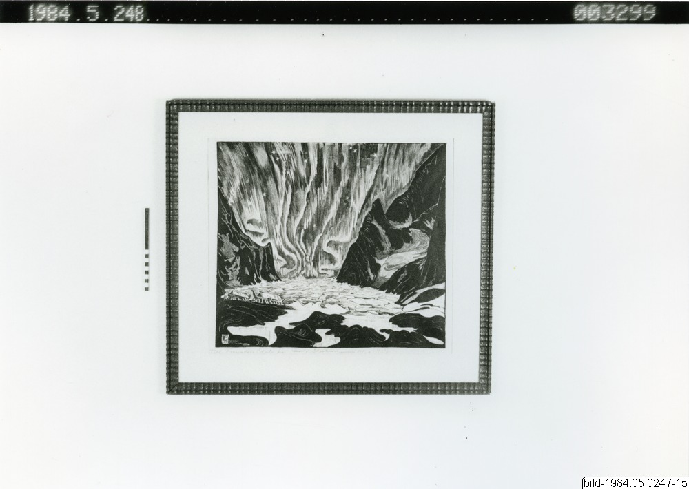 • Tavla, etsning i glas och ram. 1931 av Ossian Elgström.