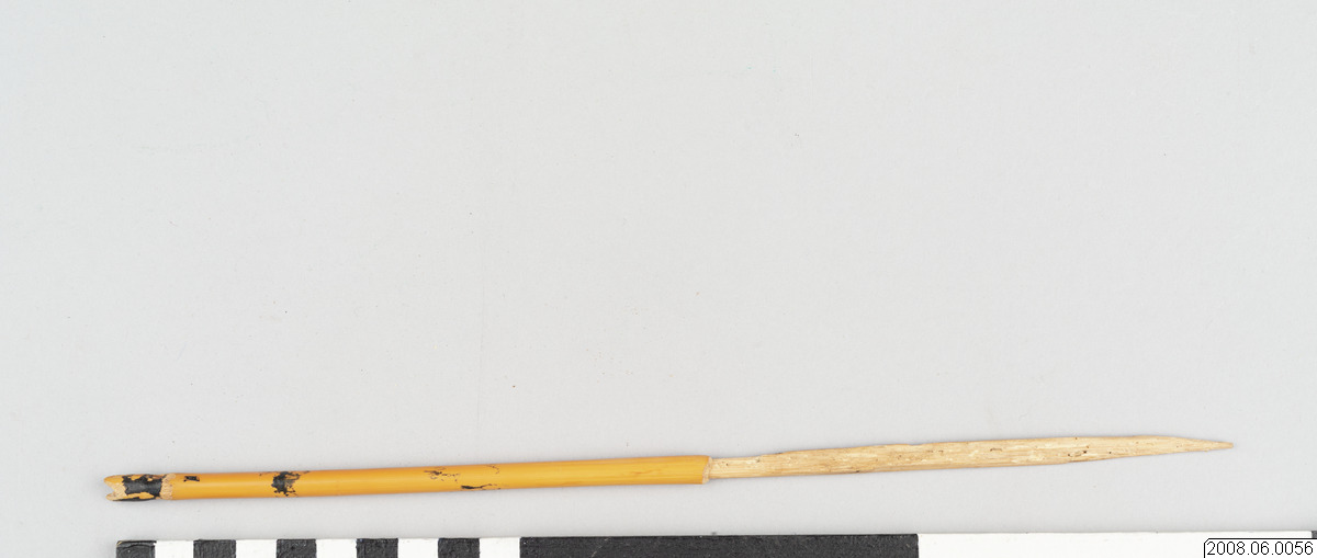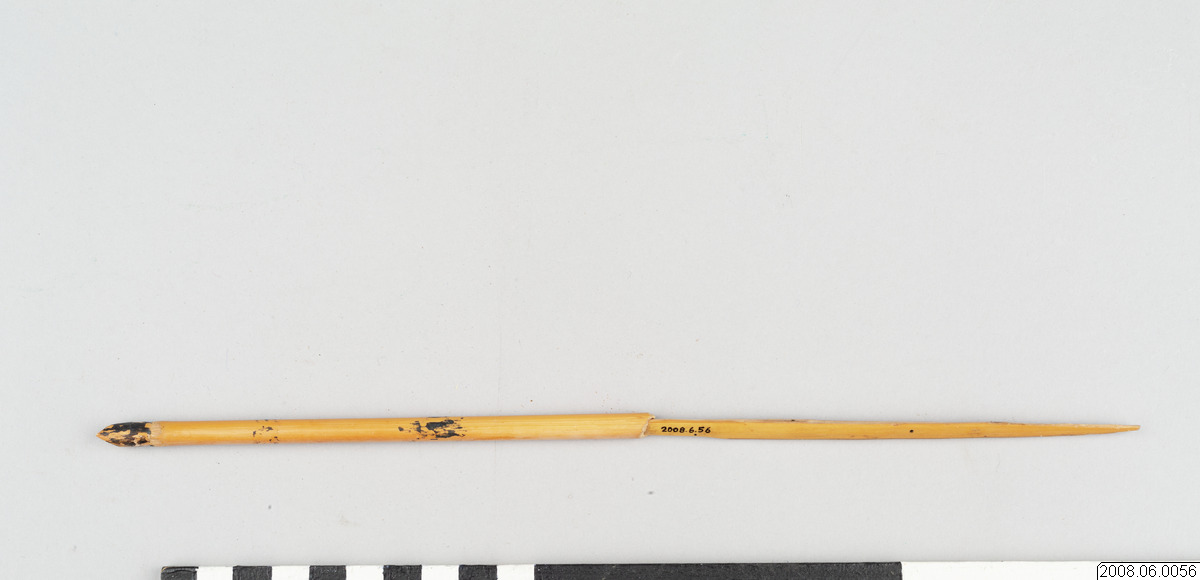 Budskapspilar. För att citera John Hedbergs (donator) dokumentation i förvärvsunderlaget om budskapspilar: […] uppsamlande vid Stilla Havstranden i San Blas. Jag har därför inte haft någon kontakt med tillverkarna. Pilarnas betydelse går ändå att tolka genom deras och symbolernas allmänna funktioner, […].