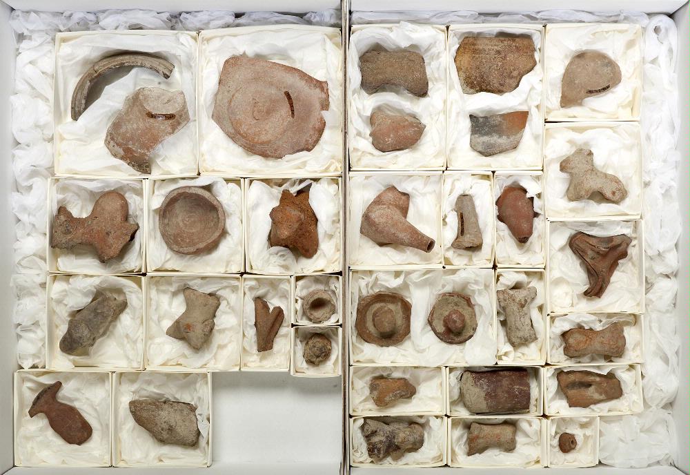 The animal figures and clay fragments in the box come from what is today Pakistan. They come from the period in the region's history known as the Indus Valley Civilization. It was an early Bronze Age culture centred on the Indus River plain. Civilization existed on the Indus before the Indo-European peoples came to South Asia, roughly between 2500 BC and 1700 BC. They had a developed system of writing which has still not been deciphered, and spoke a language that has not yet been identified. The Indus Valley Civilization is associated with well known archaeological sites like Harappa and Mohenjo-Daro.